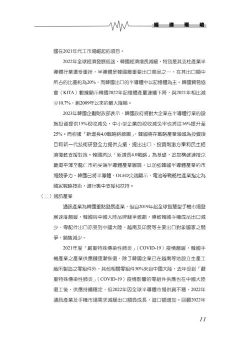 場競爭力。韓國已將半導體、OLED尖端顯示、電池等戰略性產業指定為