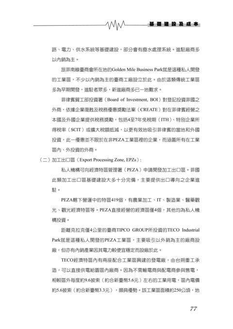 約5.6披索(約合新臺幣3.3元),頗具優勢。該工業區面積約250公頃,地