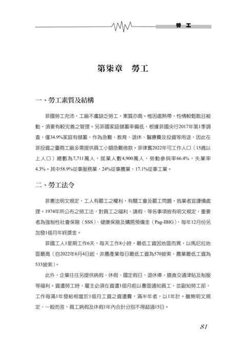 菲投資之臺商工廠多需提供員工小額急難借款。菲律賓2022年可工作人口(15歲以
