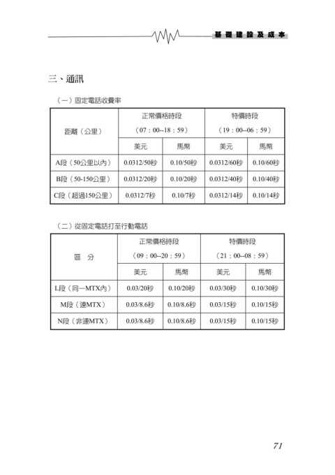 (一)固定電話收費率