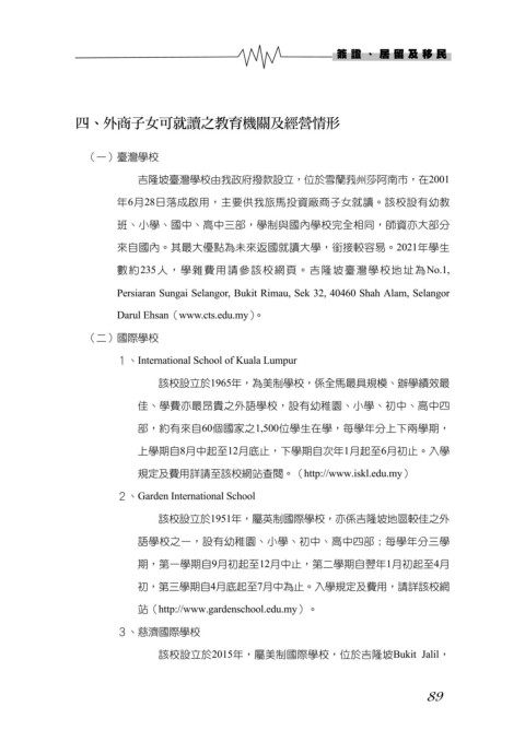 四、外商子女可就讀之教育機關及經營情形