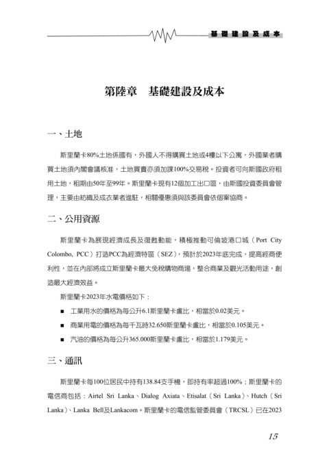 第陸章 基礎建設及成本