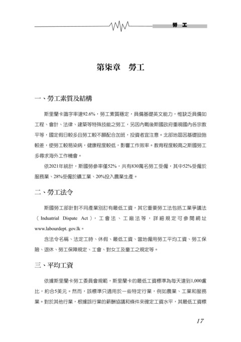 斯里蘭卡識字率達92.6%,勞工素質穩定,具備基礎英文能力,惟缺乏具備如