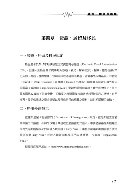 ETA),我國人赴斯里蘭卡從事短期旅遊、觀光、探親/訪友、醫療、體育/藝術/文
