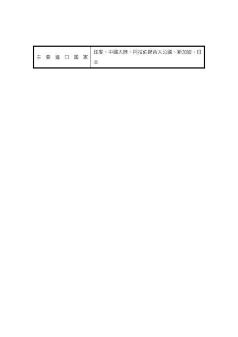 印度、中國大陸、阿拉伯聯合大公國、新加坡、日 主要進口國家 本