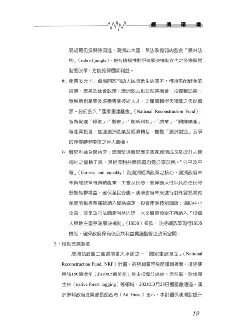 弱勢族群權益,確保全民受惠。澳洲政府未來進行對外貿易將確