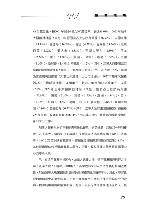 為加國機械設備第15大進口來源國。出口市場部分,2022年加拿大醫療
