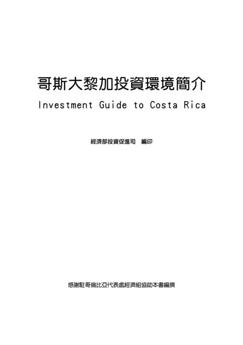 哥斯大黎加投資環境簡介 Investment Guide to Costa Rica 經濟部投資促進司 編印 感謝駐哥倫比亞代表處經濟組協助本書編撰