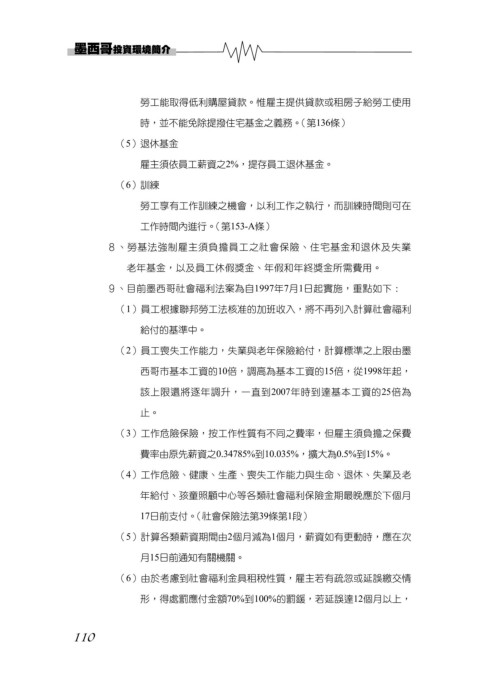 9、目前墨西哥社會福利法案為自1997年7月1日起實施,重點如下: