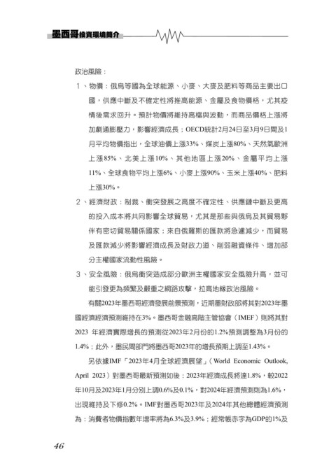 April 2023)對墨西哥最新預測如後:2023年經濟成長將達1.8%,較2022