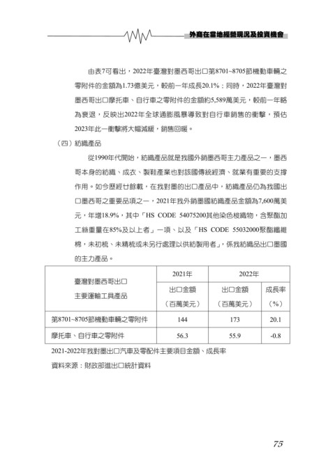 口墨西哥之重要品項之一,2021年我外銷墨國紡織產品金額為7,600萬美