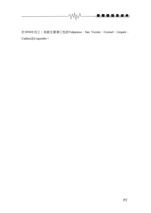 基礎建設及成本 計2030年完工。其餘主要港口包括Valparaiso、San Vicente、Coronel、Lirquén、 Caldera及Coquimbo。 91