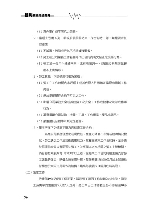 依據第19759號勞工修正案,智利勞工每週工作時數為45小時,同時