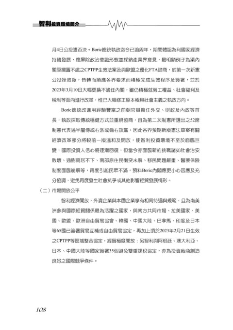 智利經濟開放,外資企業與本國企業享有相同待遇與規範,且為南美