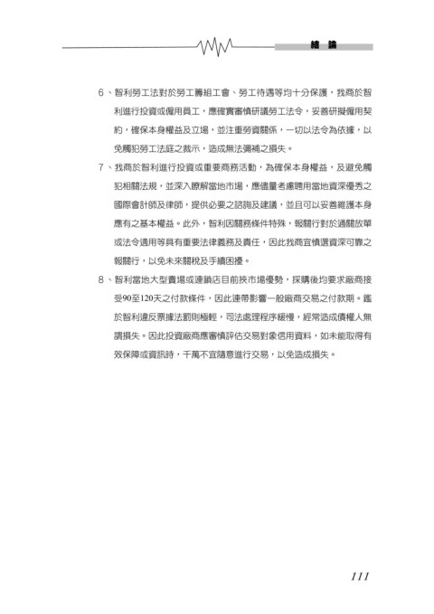 7、我商於智利進行投資或重要商務活動,為確保本身權益,及避免觸