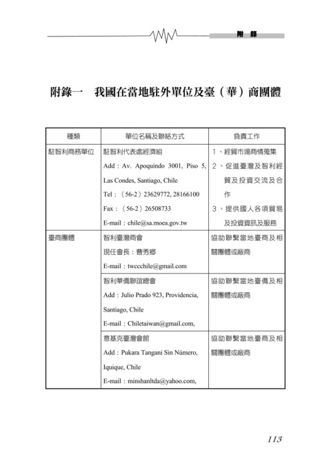 附錄一 我國在當地駐外單位及臺(華)商團體