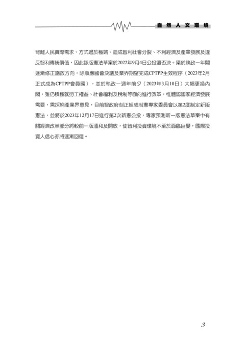 需要,需採納產業界意見,目前智政府刻正組成制憲專家委員會以第2度制定新版