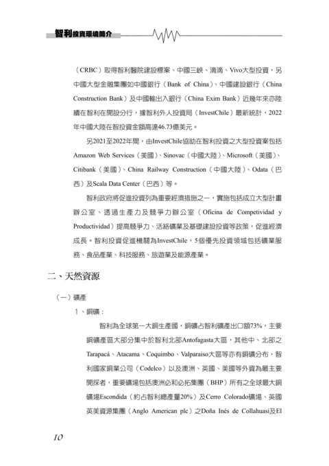 成長。智利投資促進機關為InvestChile,5個優先投資領域包括礦業服