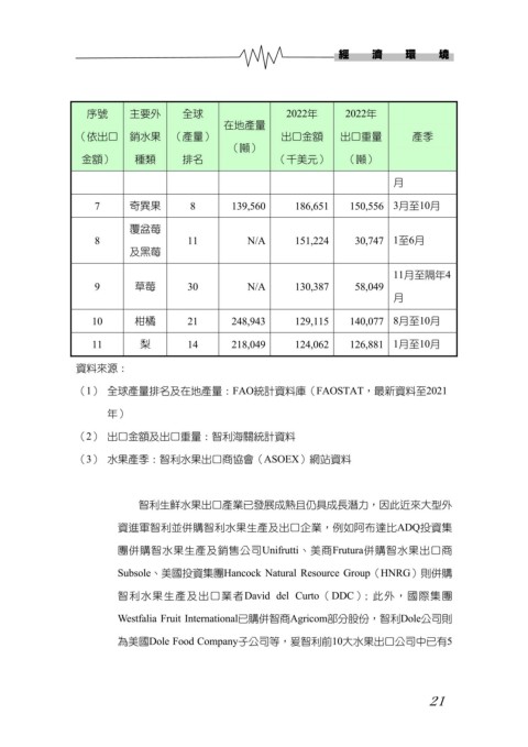 為美國Dole Food Company子公司等,爰智利前10大水果出口公司中已有5
