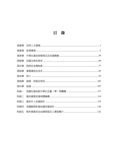 附錄一 我國在當地駐外單位及臺(華)商團體 ..................................................... 113