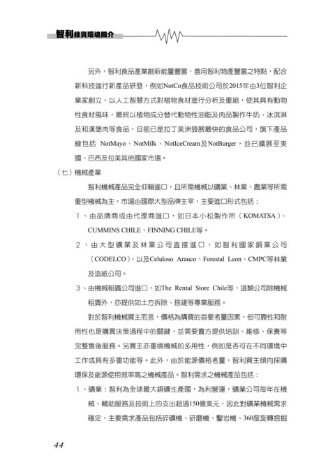 智利機械產品完全仰賴進口,且所需機械以礦業、林業、農業等所需