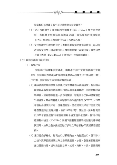 50%,智利政府希望積極拓銷其他優勢產品以擴大出口項目及分散出