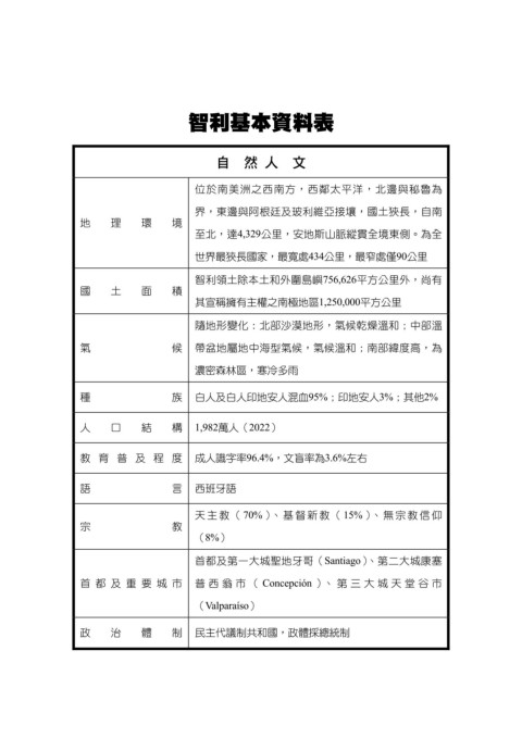 智利基本資料表