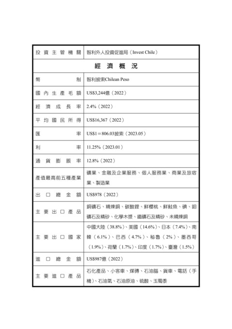 投資主管機關 智利外人投資促進局(Invest Chile)