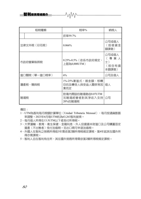 1、UTM為智利每月稅額計算單位(Unidad Tributaria Mensual),每月按通貨膨脹