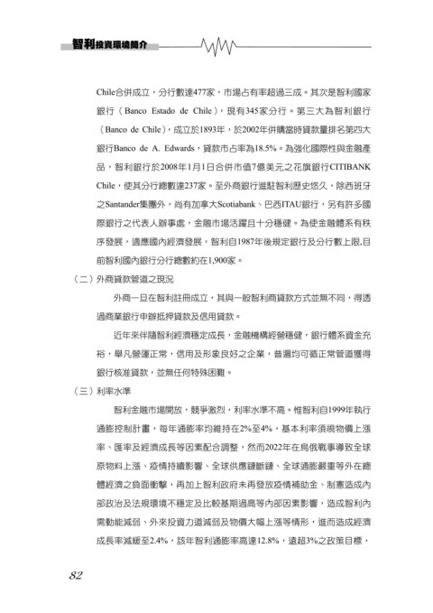 序發展,適應國內經濟發展,智利自1987年後規定銀行及分行數上限,目