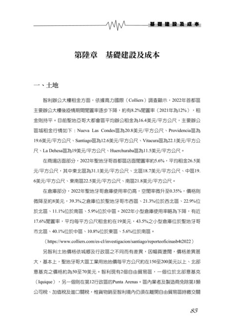 19.6美元/平方公尺、Santiago區為12.6美元/平方公尺、Vitacura區為22.1美元/平方公