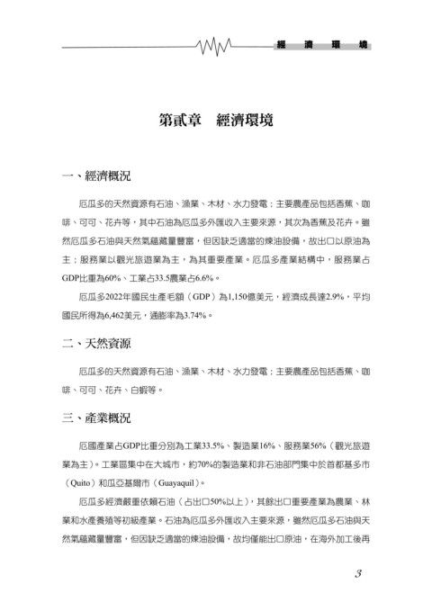 主;服務業以觀光旅遊業為主,為其重要產業。厄瓜多產業結構中,服務業占