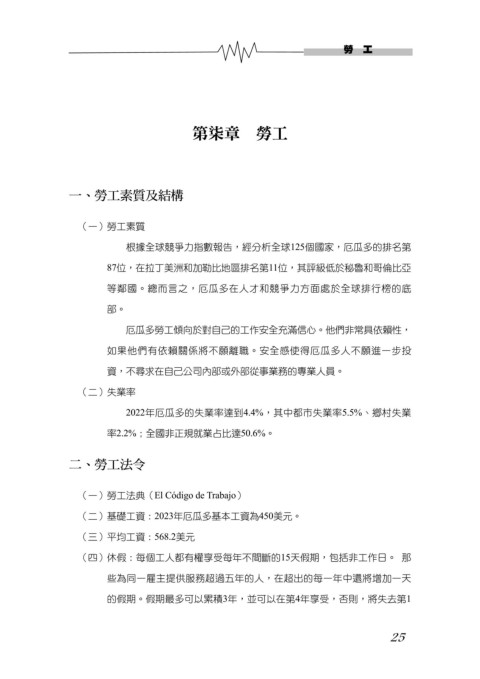 (二)基礎工資:2023年厄瓜多基本工資為450美元。