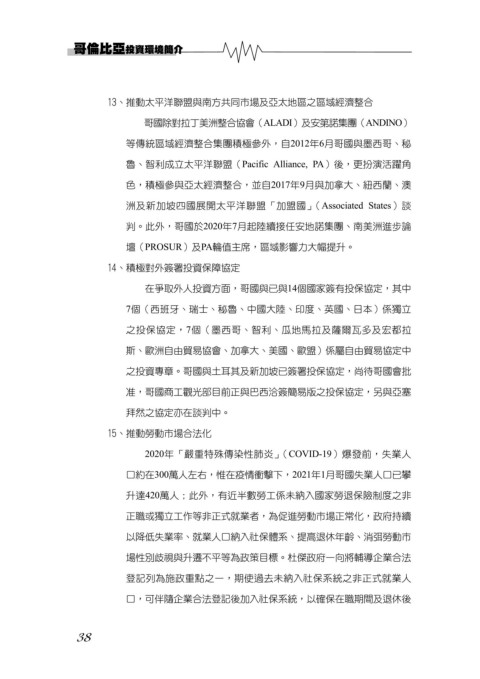 之投資專章。哥國與土耳其及新加坡已簽署投保協定,尚待哥國會批