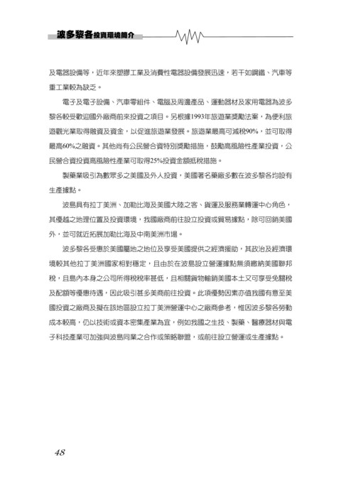 國投資之廠商及擬在該地區設立拉丁美洲營運中心之廠商參考,惟因波多黎各勞動