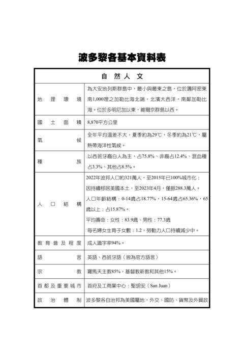波多黎各基本資料表