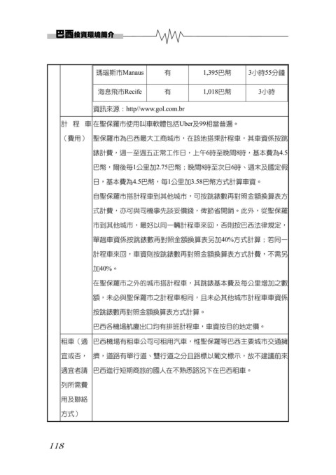 (費用) 聖保羅市為巴西最大工商城市,在該地搭乘計程車,其車資係按跳