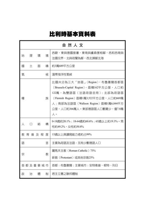 首都及重要城市 首都:布魯塞爾;主要城市:安特衛普、根特、列日