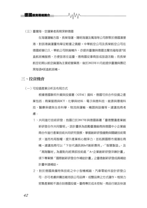 根據德國聯邦外貿與投資署(GTAI)資料,德國可供合作投資之產