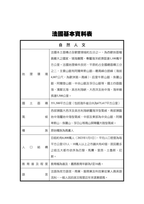 方公里。法國地理條件良好,平原約占全國總面積三分