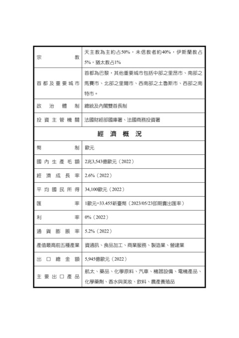 投資主管機關 法國財經部國庫署、法國商務投資署