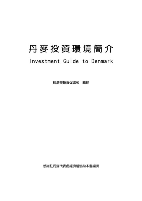 丹麥投資環境簡介 Investment Guide to Denmark 經濟部投資促進司 編印 感謝駐丹麥代表處經濟組協助本書編撰