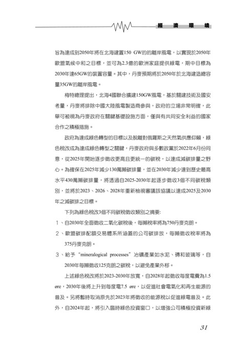 意,從2025年開始逐步徵收更高且更統一的碳稅,以達成減碳排量之野