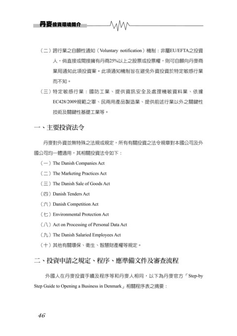 丹麥對外資並無特殊之法規或規定,所有有關投資之法令規章對本國公司及外