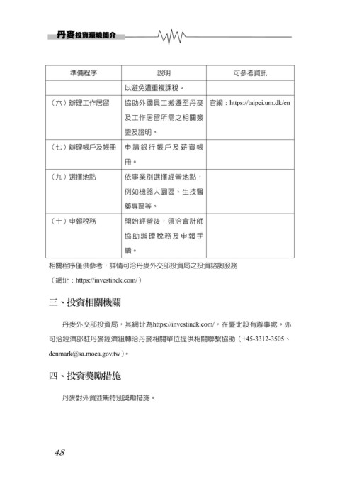 相關程序僅供參考,詳情可洽丹麥外交部投資局之投資諮詢服務
