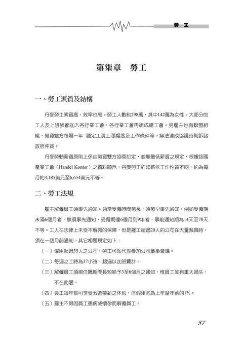 丹麥勞動薪資原則上係由勞資雙方協商訂定,並無最低薪資之規定,根據該國