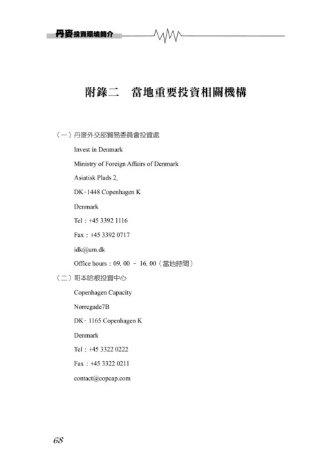 (一)丹麥外交部貿易委員會投資處