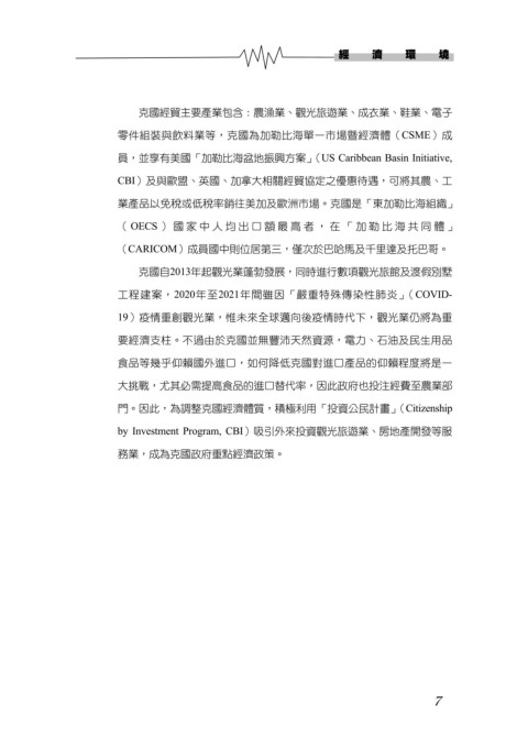 零件組裝與飲料業等,克國為加勒比海單一市場暨經濟體(CSME)成