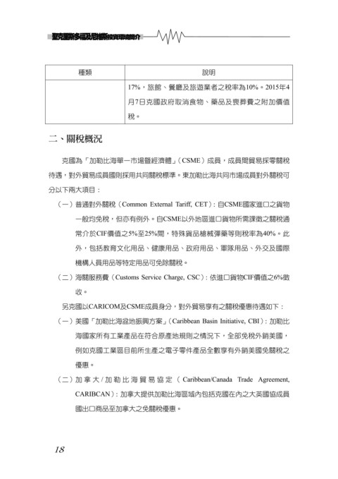 (一)普通對外關稅(Common External Tariff, CET):自CSME國家進口之貨物