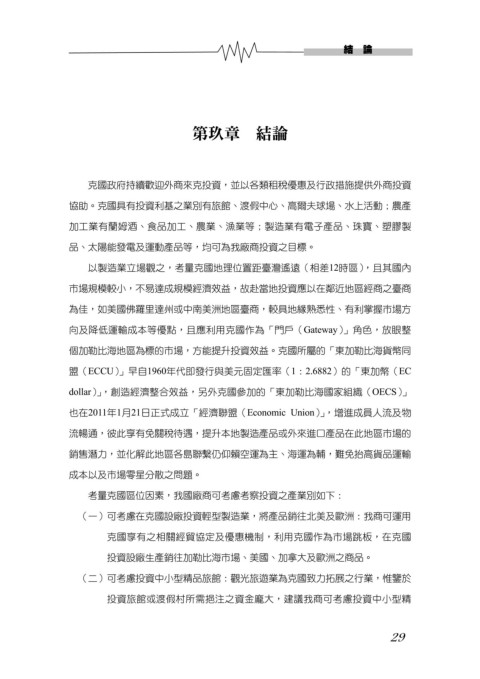 (一)可考慮在克國設廠投資輕型製造業,將產品銷往北美及歐洲:我商可運用
